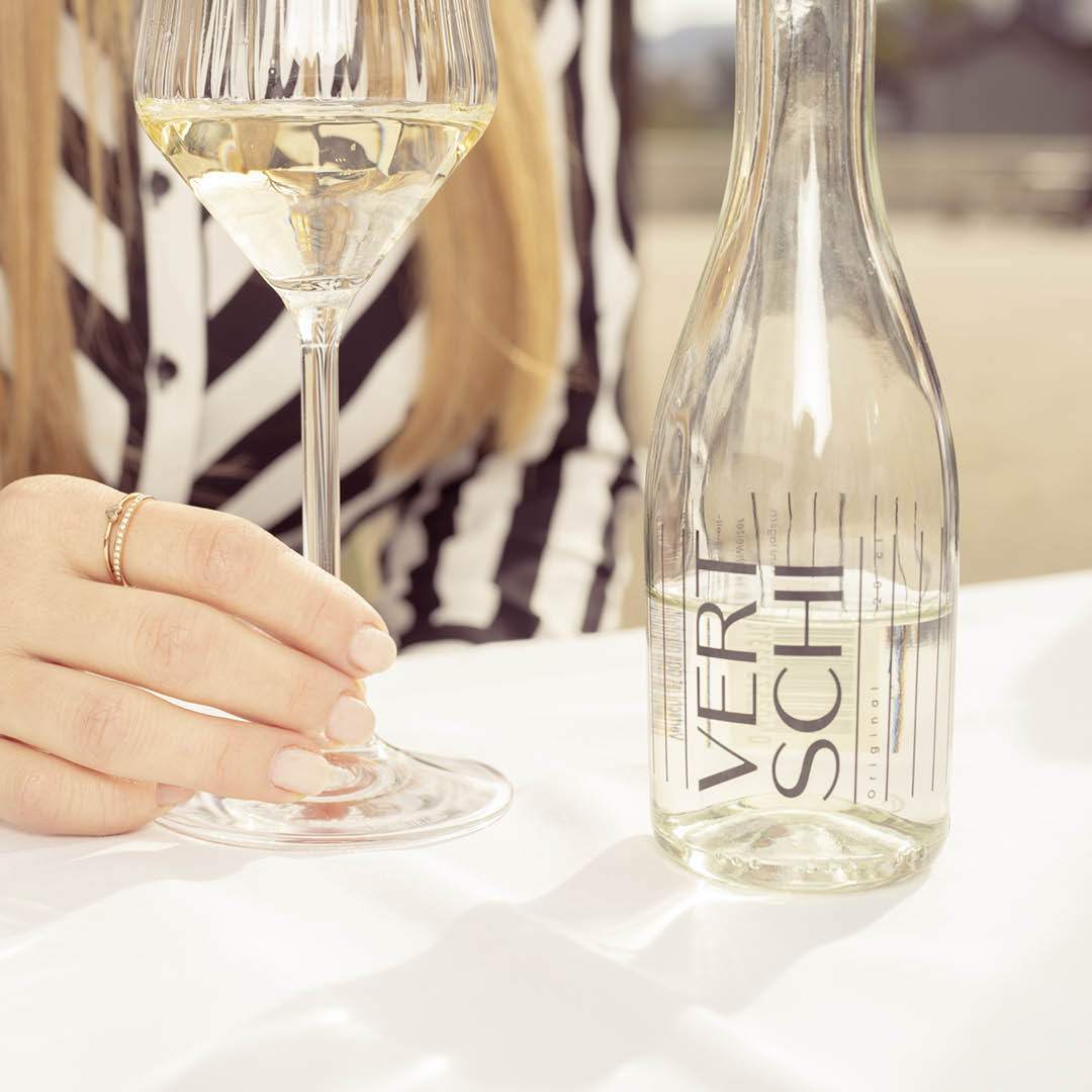 Vertschi ist kein weiteres Wässerchen mit irgendwelchen Aromen. Im Gegenteil: Es wird so aufwändig wie Wein hergestellt – einfach aus frühreifen Trauben. Und die haben es in sich: Sie sind prall gefüllt mit der hochwertigen Säure Malat. Daher das erfrischend-gesunde Säure-Erlebnis, das wir als Winzer, Gourmet und Sommelier nur mit den allernötigsten natürlichen Zutaten abgerundet haben. Ohne Zucker, versteht sich.